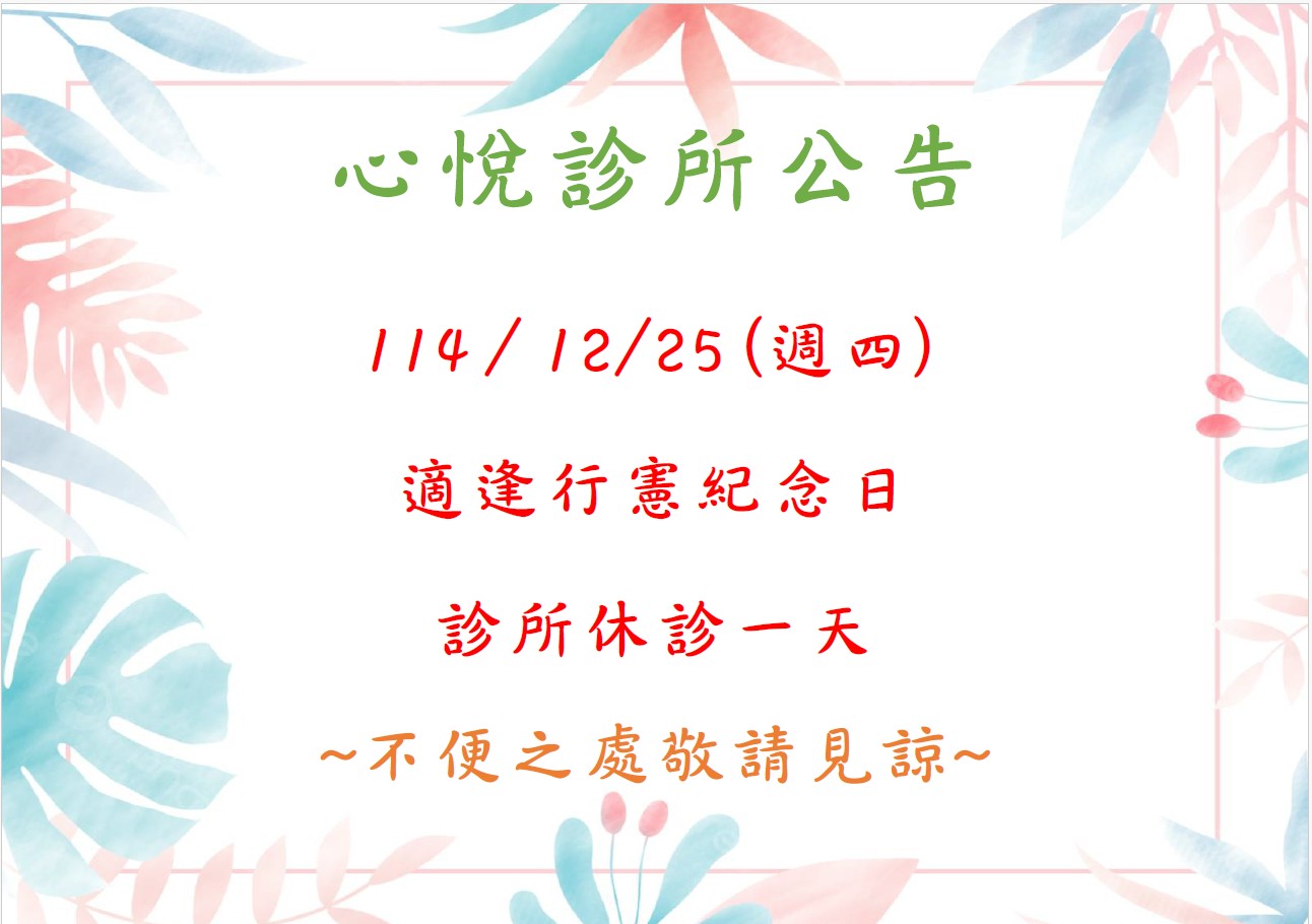 12/25國定假日休診一天