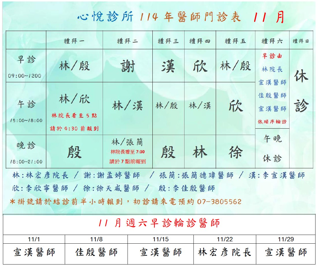 11月醫師門診表