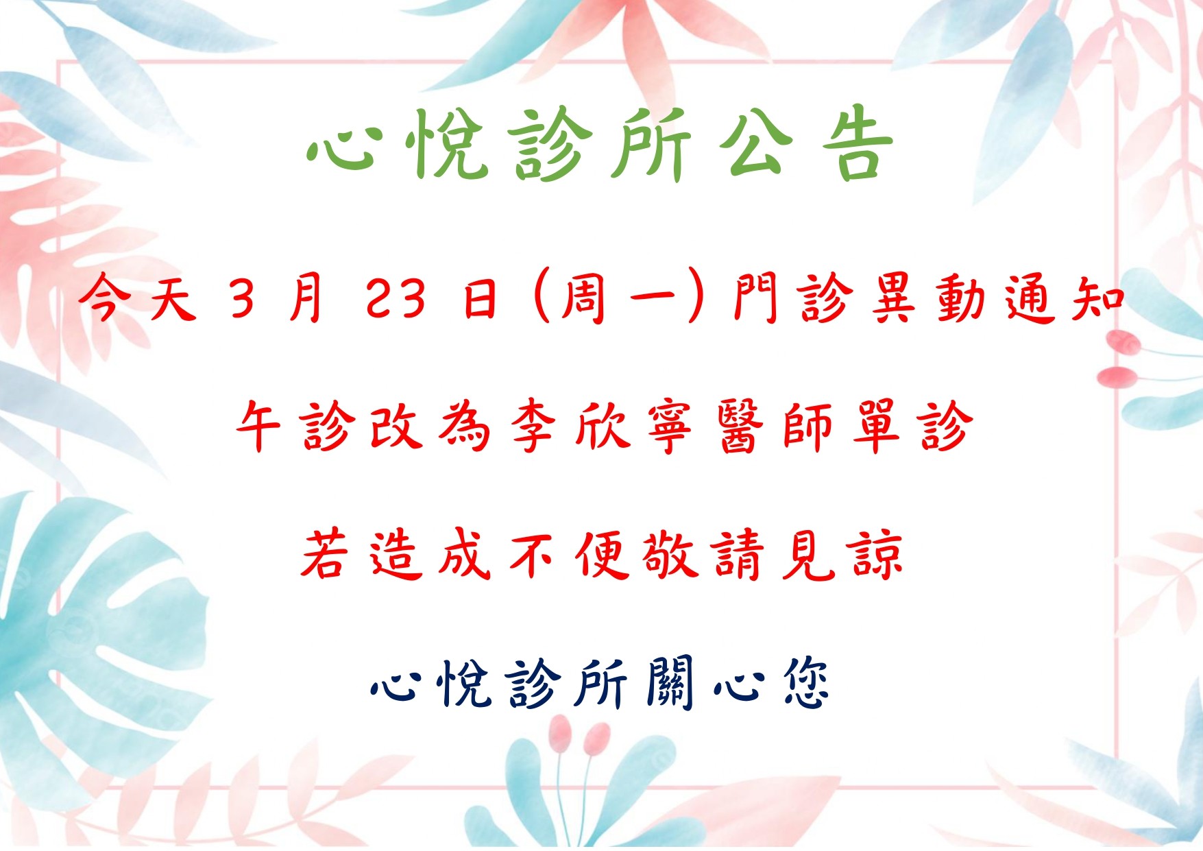 115.3.23 臨時門診異動