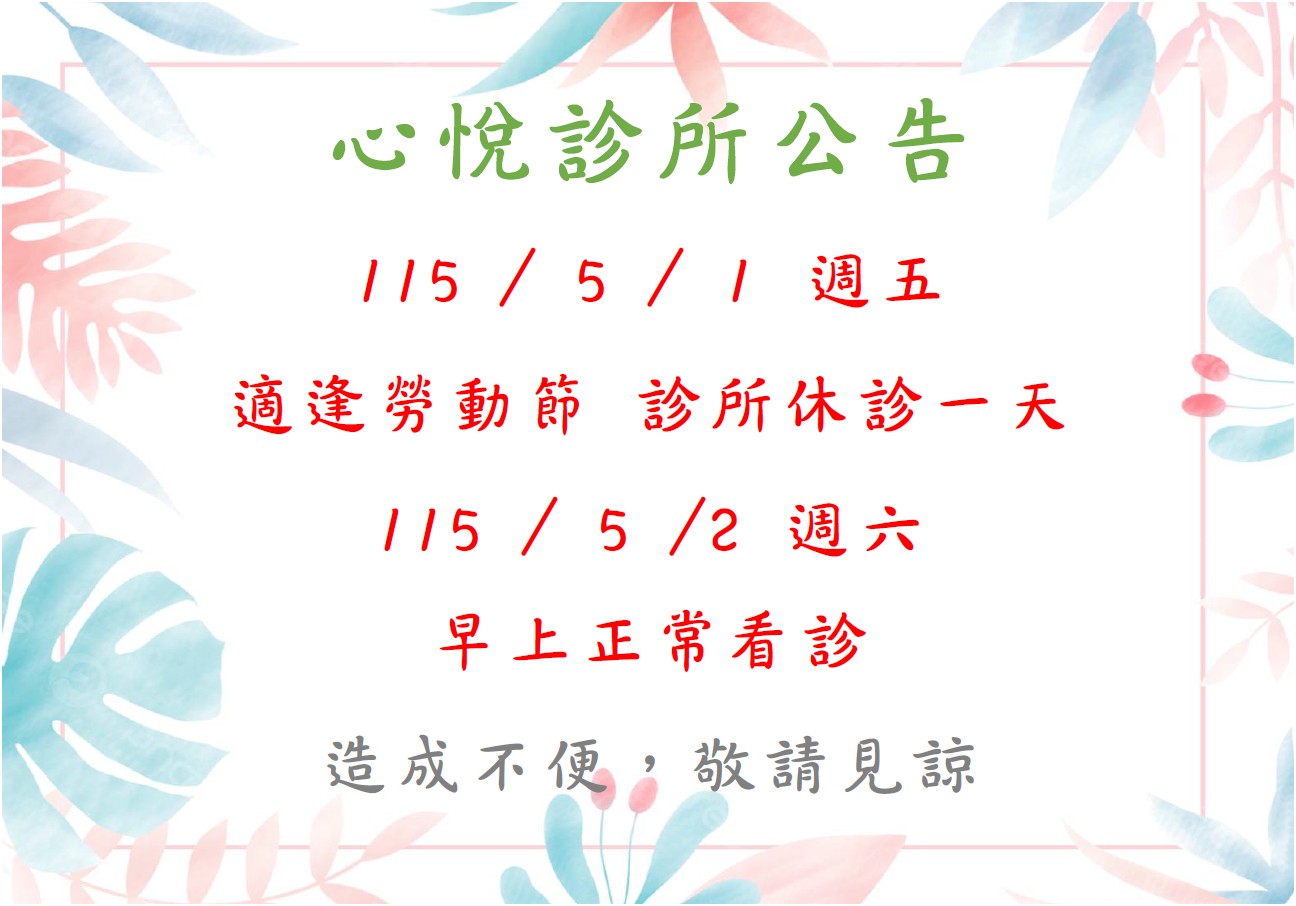 5/1勞動節休診一天